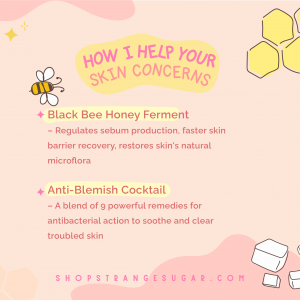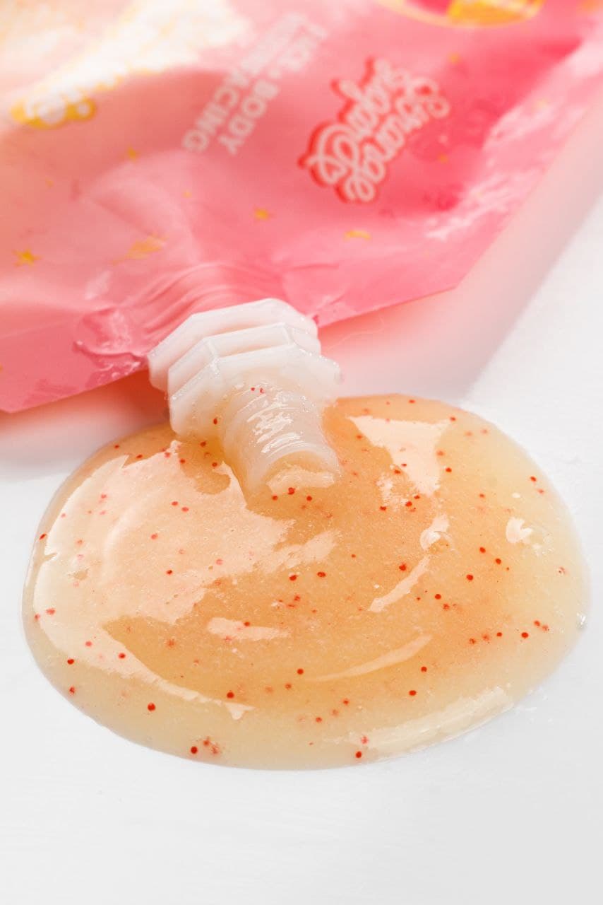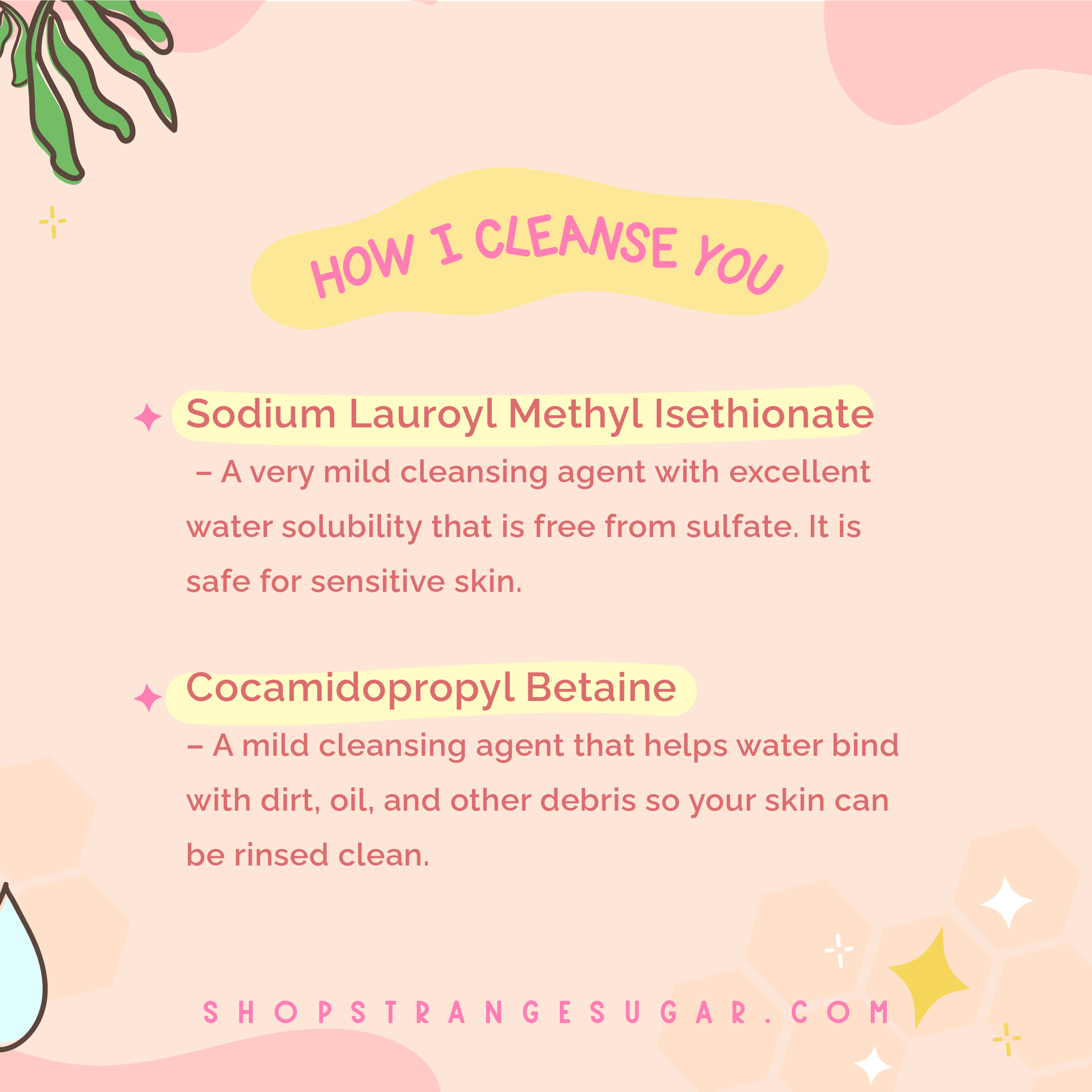 Ingredients list: Aqua, Sucrose, Cocamidopropyl Betaine, Sodium Lauroyl Methyl Isethionate, Cellulose Acetate, Glycerin, Butyrospermum Parkii (Shea Butter), Ceteareth-20, Stearic Acid, Butylene Glycol, Symphytum Officinale Leaf Extract, Zymomonas Ferment Extract, Honey Extract, Citric Acid, Lactic Acid, Malic Acid, Gluconic Acid, Ascorbic Acid, Glycolic Acid, Salicylic Acid, Tartaric Acid, Phenoxyethanol, Triethylene Glycol, Lactose, Cellulose, Hydroxypropyl Methylcellulose, Jojoba Esters, CI 77491, Tocopheryl Acetate, Ascorbyl Palmitate, Fragrance, Oenthera Blennis (Evening Primrose) Seed Extract, Rehmannia Chinnesis Root Extract, Prunus Persica (Peach) Leaf Extract, Phellodendron Amurense Bark Extract, Algae Extract, Houttuynia Cordata Extract, Hibiscus Esculentus Fruit Extract, Cynara Scolymus (Artichoke) Leaf Extract, Citrus Junos Fruit Extract.