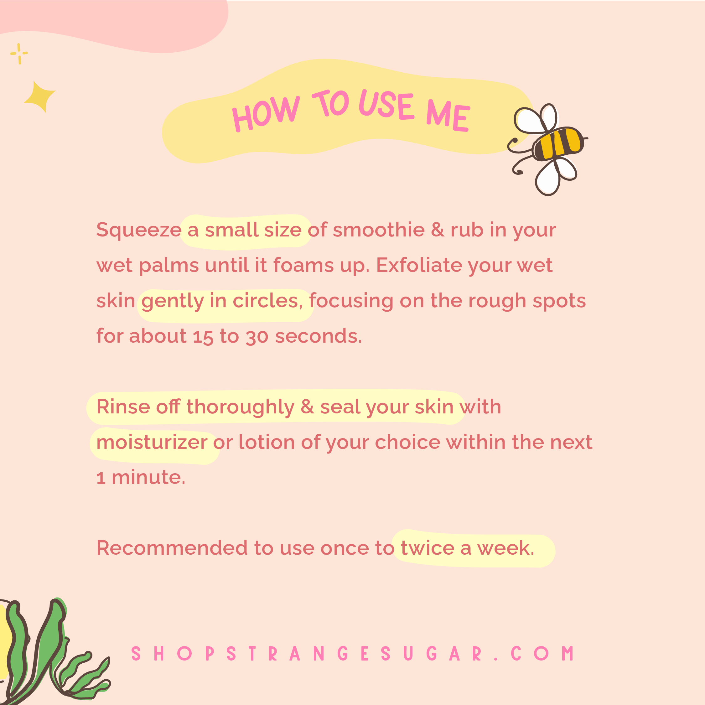 Once or twice weekly in shower. Ideal for pre waxing (1 day before) and post waxing exfoliation (1-2 days after).