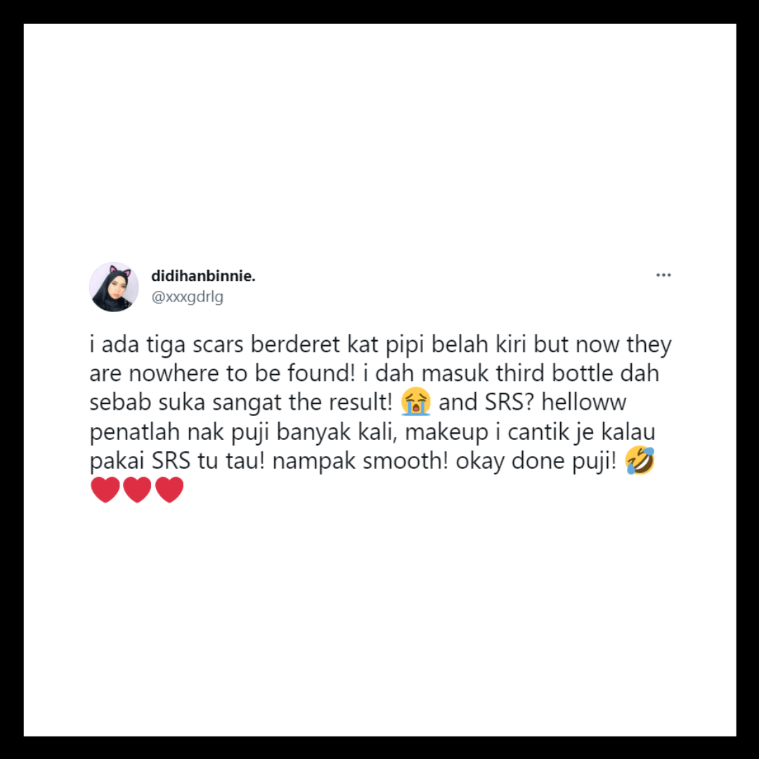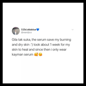 INGREDIENTS : Aqua, Glycerin, Centella Asiatica Leaf Extract, Bifida Ferment Lysate, Citrus Reticulate (Tangerine) Peel Extract, Imperata Cylindrica Root Extract, Arbutin, Vitis Vinifera/Vitis Vinifera (Grape) Seed Extract, Lecithin, Linoleic Acid, Linolenic Acid, Tocopheryl Acetate, Sodium Ascorbyl Phosphate, Glutathione, Tocopherol, Acrylates/C10-30 alkylate Acrylate Crosspolymer, Phenoxyethanol, Triethylene Glycol