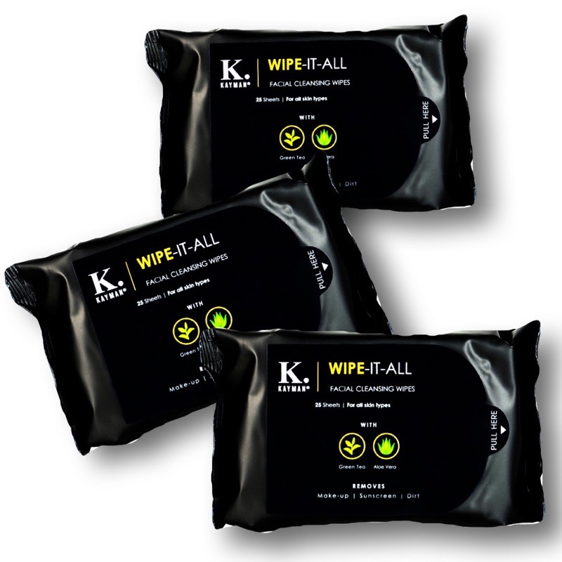 Kayman Beauty Wipe-It-All Facial Cleansing Wipes were created especially for when you need a quick and effective clean. Formulated with aloe vera and green tea, rest assured these wipes will leave your skin feeling quickly refreshed and nourished. This alcohol-free and fragrance-free formula is gentle on your skin. Take our Wipe-It-All with you anywhere you go for a convenient pick-me-up!